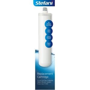 This replacement filter is designed for the Stefani Full Flow In-Line System (model FF-6000). It effectively reduces chlorine and odour, improving taste and water quality.